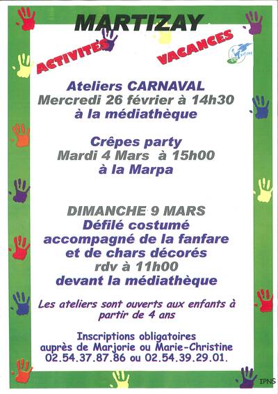 Actualité Atelier Carnaval le Mercredi 26 Février à 14h30 à la Médiathèque.